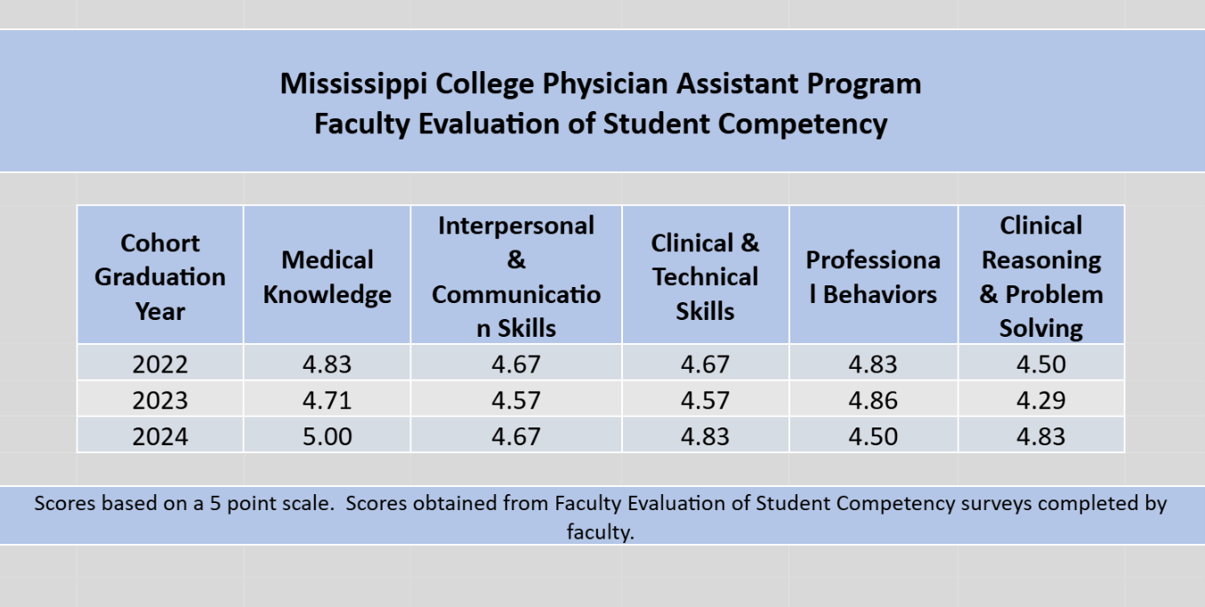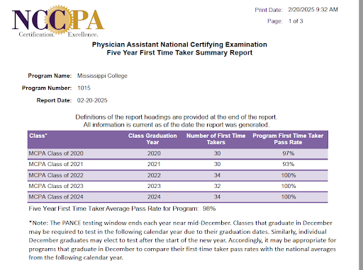 - Rationale: The Mississippi College PA Program recognizes the importance of a high graduation rate.