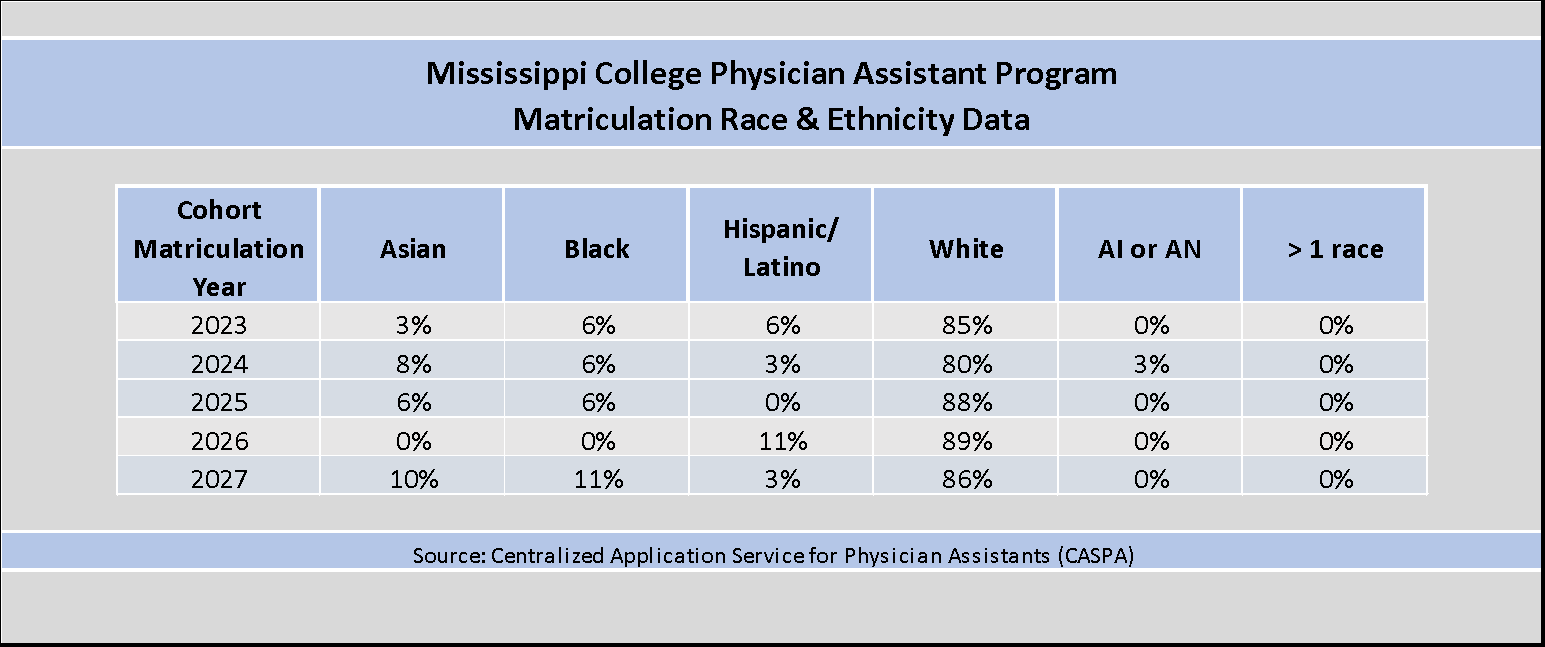- Rationale: Maintaining Inclusion and diversity is an important Program goal, particularly to train PAs who can meet the demands of a diverse patient population. The Mississippi College PA Program recognizes the importance of inclusivity and diversity.
